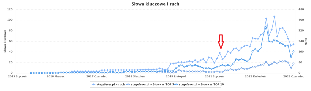 Efekty pozycjonowania strony stagefever.pl